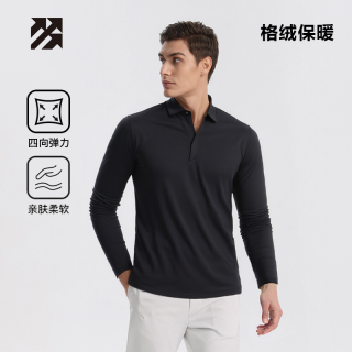路森秋男长袖针织POLO衫加绒保暖翻领套头衫运动T恤打底休闲上衣
