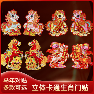生肖福字门贴2026新款马年过年大门装饰新年卡通立体窗花贴纸剪纸