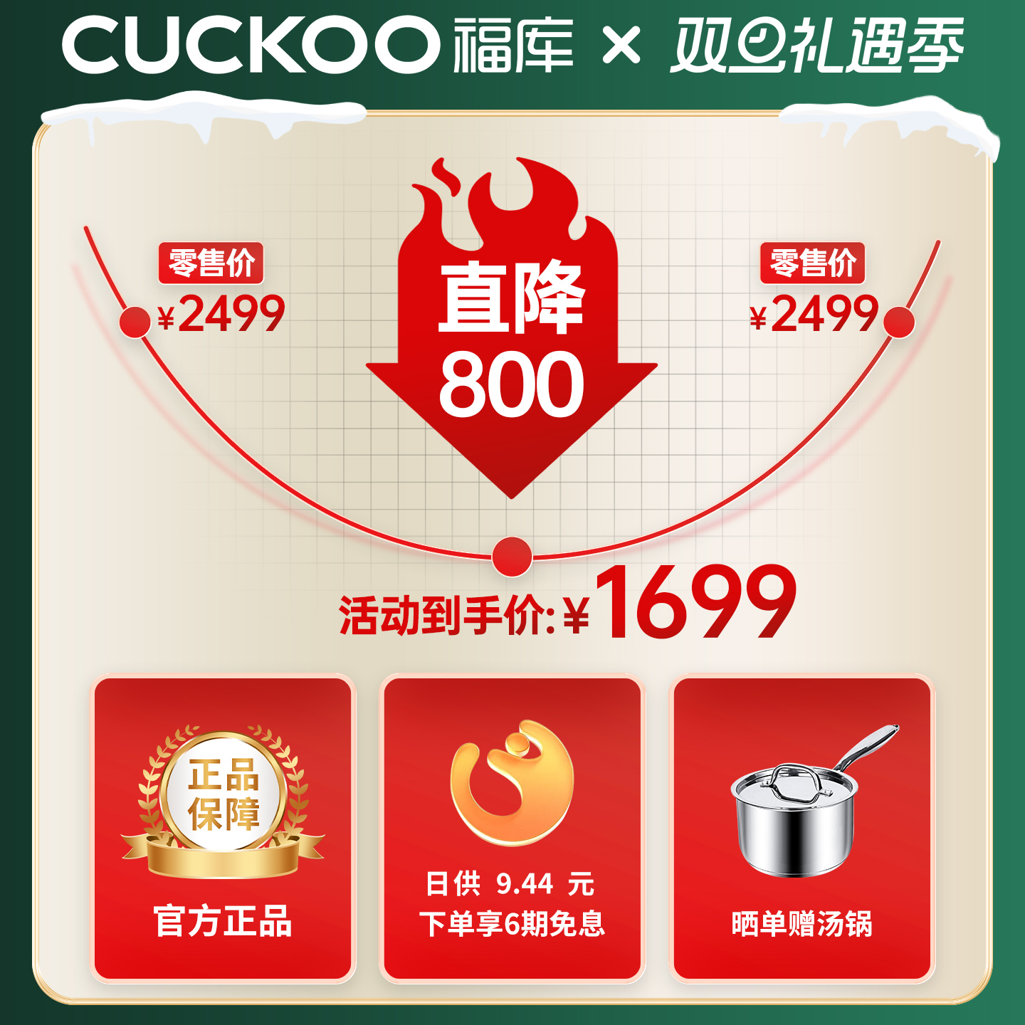 :原价1699元,现在领取50元优惠券,预估到手1649元,CUCKOO福库官方正品IH压力智能电饭煲;【福库】3L大容量,大屏操作,球形双胆,六层铜匠厚斧,一锅多用。六大核心功能,智能预约,吃饭不匆忙。【赠运费险】