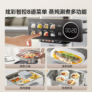 美的全钢速沸多功能料理锅家用分体式电火锅不锈钢0涂层蒸煮炒煎
