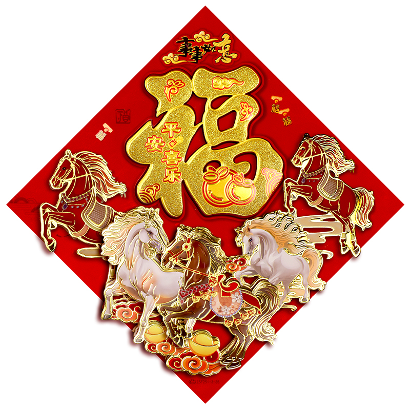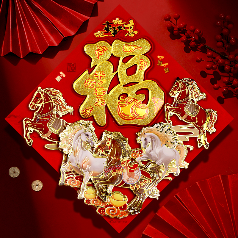 元旦大小号创意生肖立体卡通福字贴门贴窗花2026马年新年大门斗方