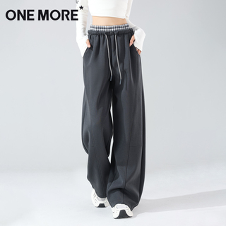 one more格纹拼接弯刀裤女2025秋季流行小个子抽绳宽松阔腿裤子S