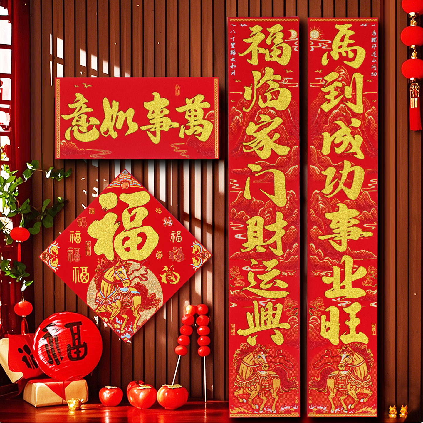 :原价17.4元,现在领取1元优惠券,预估到手16.4元,马年新年装饰福字门贴自粘植绒春联套装;【立减2.4元,首单+签到,叠加淘金币更划算】新年装饰,颜色靓丽,增添喜庆氛围。多种尺寸,内容可选,制作精细,植绒材质不易褪色,马上新年了,到货装饰起来吧~~