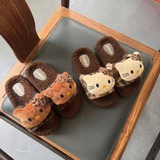卡通可爱豹纹冬毛毛拖鞋公仔可爱少女心小众辣妹风高颜值羊羔毛鞋