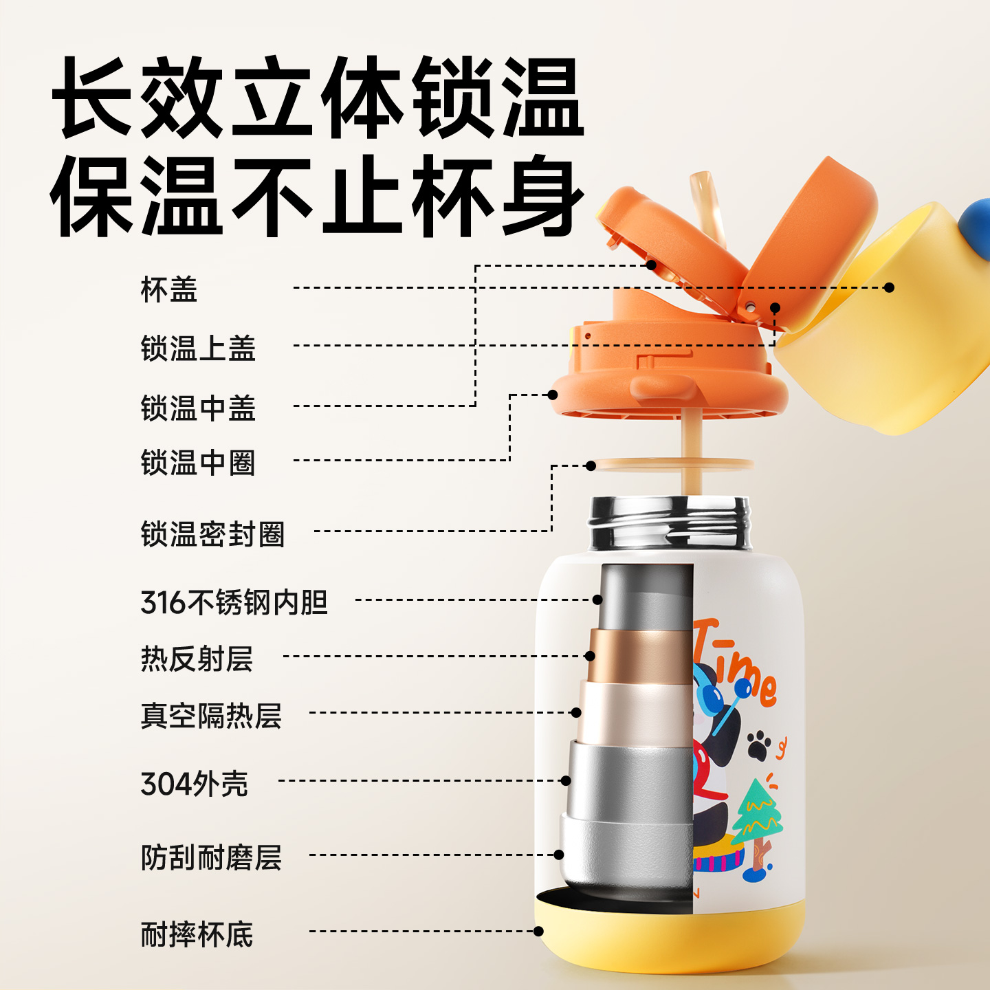 如山儿童保温杯水杯宝宝幼儿园小学生吸管杯上学专用男女便携水壶