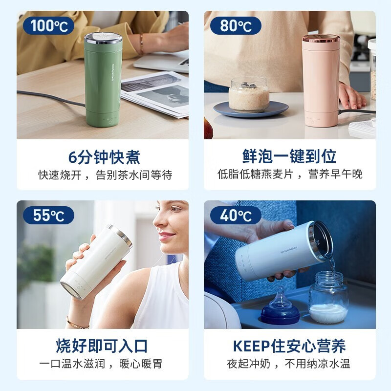 摩飞烧水杯小型便携式烧水壶旅行加热杯保温杯电热杯随行冲奶泡茶