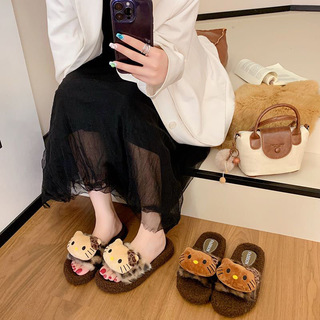 卡通KT猫外穿时尚秋冬加绒羊羔绒拖鞋懒人网红时尚少女心超嫩可爱
