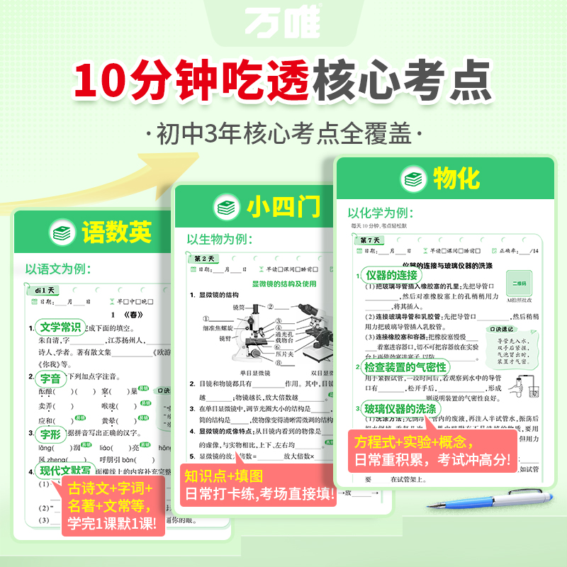 万唯中考初中考点默写小纸条语数英物化核心考点必背公式方程式七八九年级物理知识点清单英语单词默写期末总复习练习册万维教育