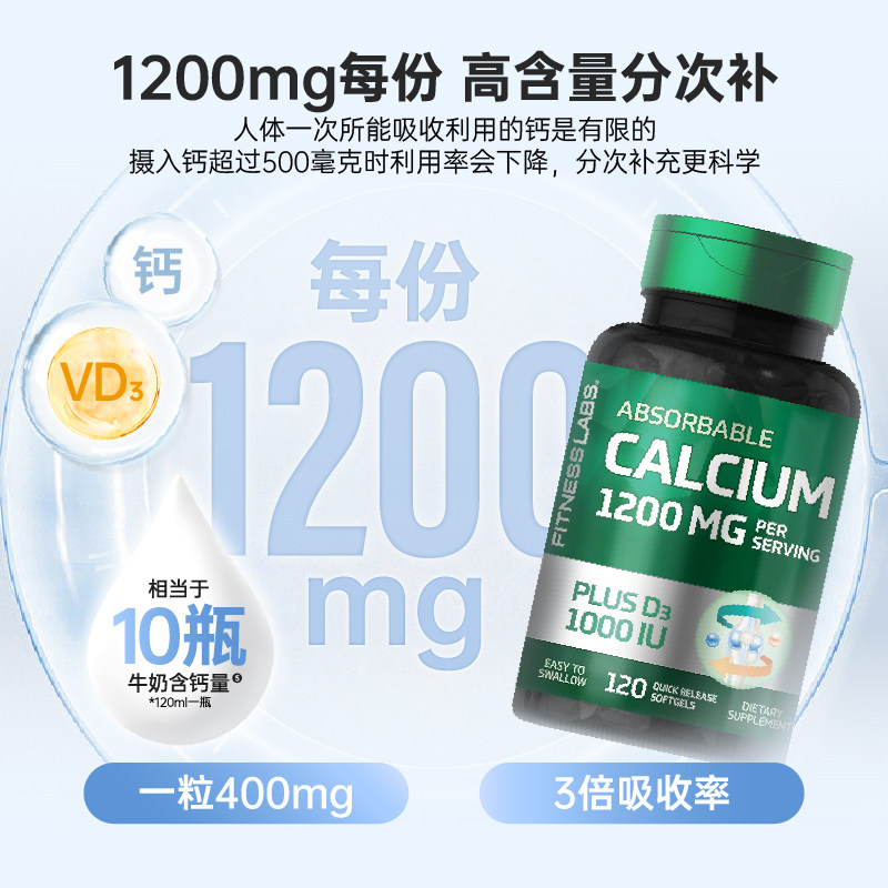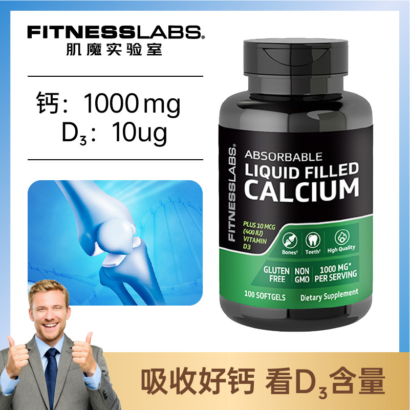 fitnesslabs液体钙vd3胶囊官方正品旗舰青少年成人中老钙片100粒