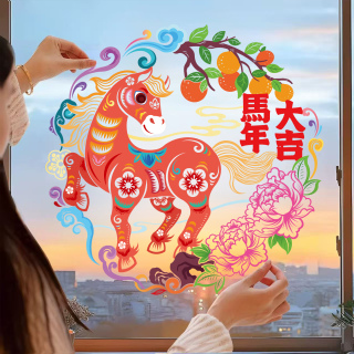 2026新款马年窗花静电贴新年福字剪纸玻璃门贴纸春节过年装饰用品