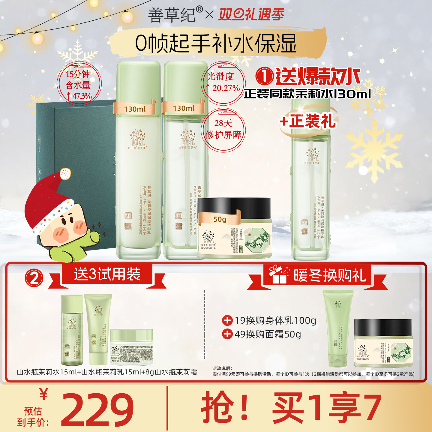 善草纪三代茉莉水乳套装正品干皮敏感肌补水保湿舒缓修护屏障退红