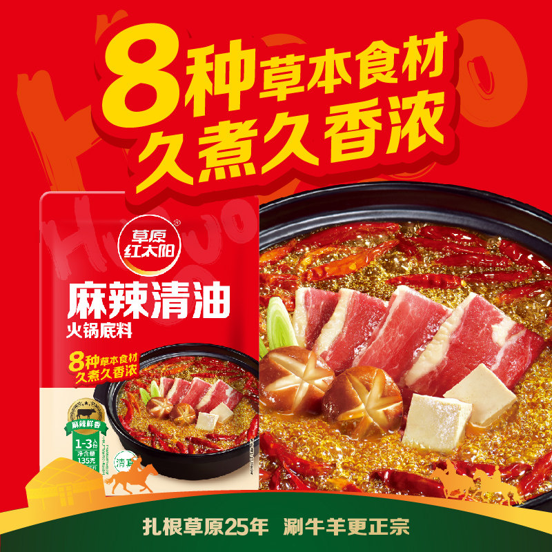 草原红太阳多口味火锅底料菌汤清汤微辣麻辣汤料调味料锅底料135g