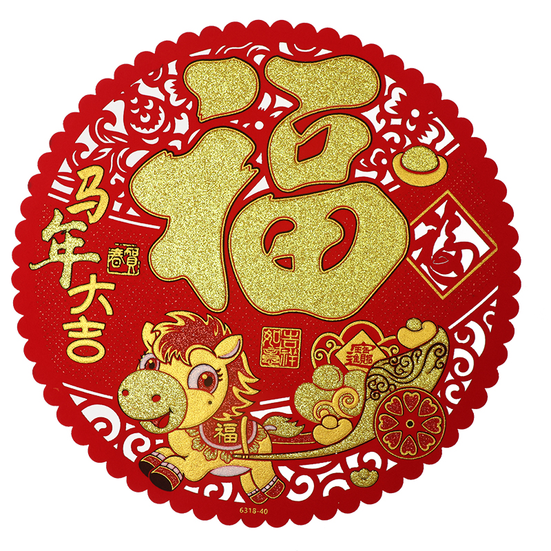 2026马年窗贴新年画春节装饰植绒布剪纸大窗花玻璃贴自粘福字贴纸