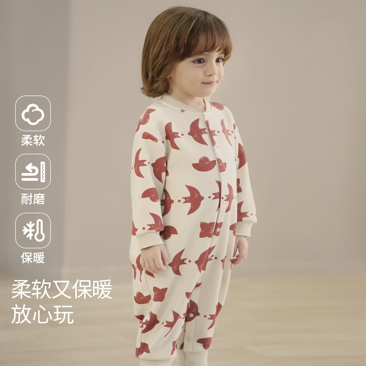 婴儿加绒卫衣中国风红色新年服秋冬加厚保暖卫衣连体哈衣宝宝冬装