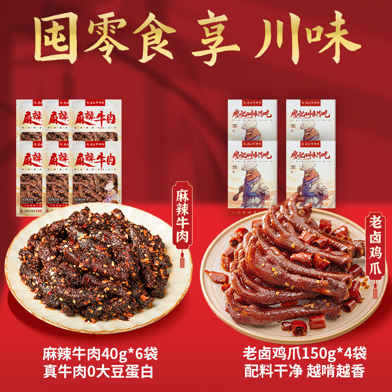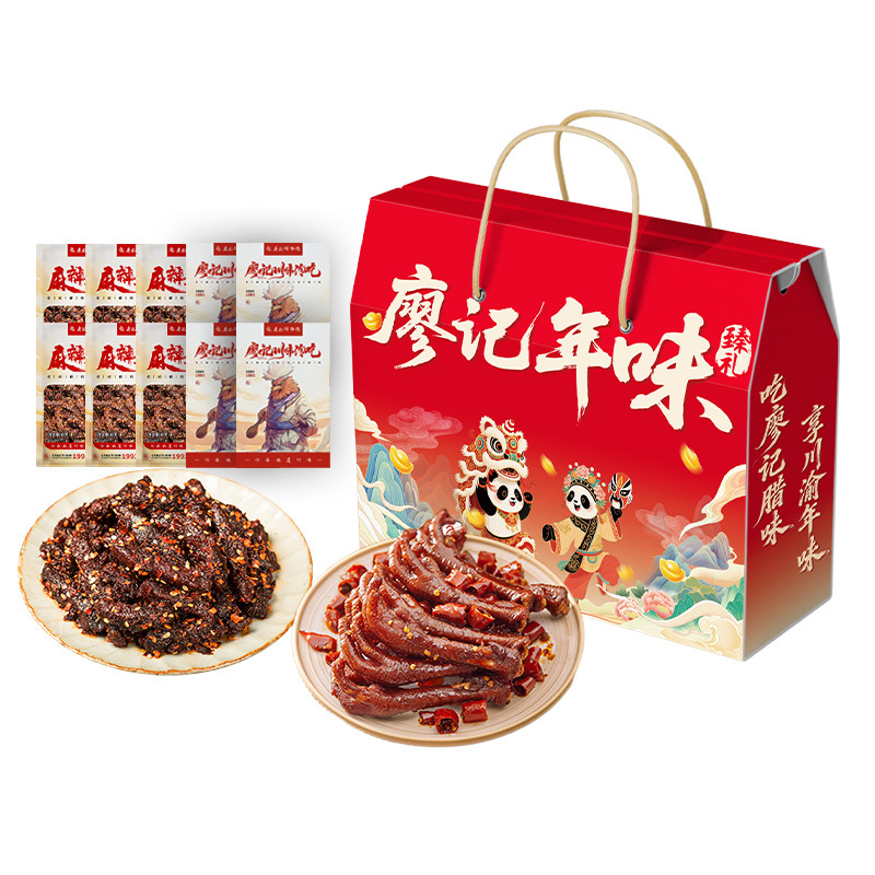 廖记棒棒鸡川味零食年货礼盒840g麻辣牛肉鸡爪卤味解馋零食大礼包