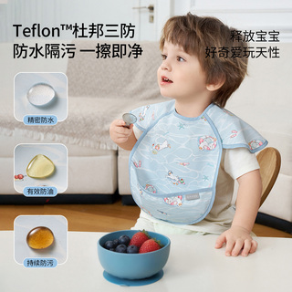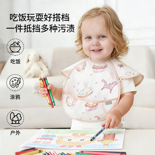 【新品】嫚熙婴儿吃饭罩衣夏季宝宝辅食围兜短袖反穿衣饭兜罩衣