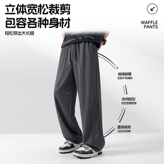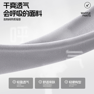 名创优品华夫格裤子男女同款夏季直筒宽松透气薄款黑色休闲长裤Y