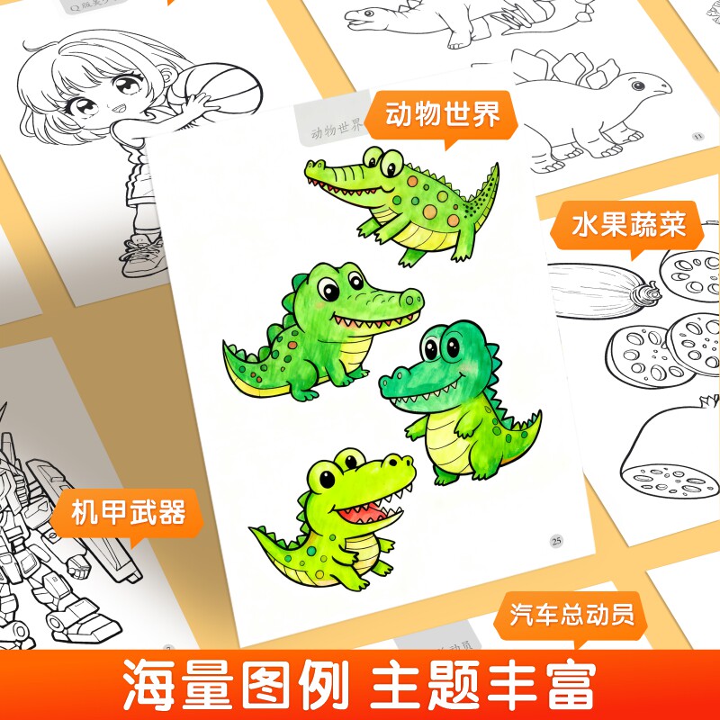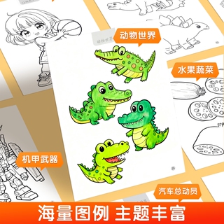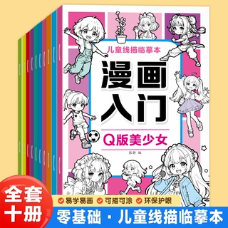 全套10册漫画入门儿童线描临摹本风景人物水果蔬菜恐龙机甲武器汽车Q版美少女儿童专注创造力培养提升审美和色彩认知线描临摹本
