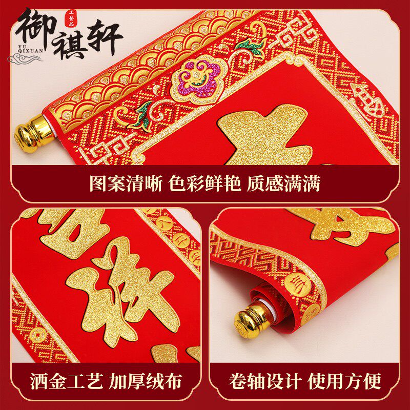 :原价8.82元,现在领取1元优惠券,预估到手7.82元,马年新年装饰手拿四字春联挂轴手持对联;【立减0.98元,签到+淘金币到手更划算】新年装饰,颜色靓丽,增添喜庆氛围。全SKU一个价格,内容可选,制作精细,植绒材质不易褪色,马上新年了,到货装饰起来吧~~