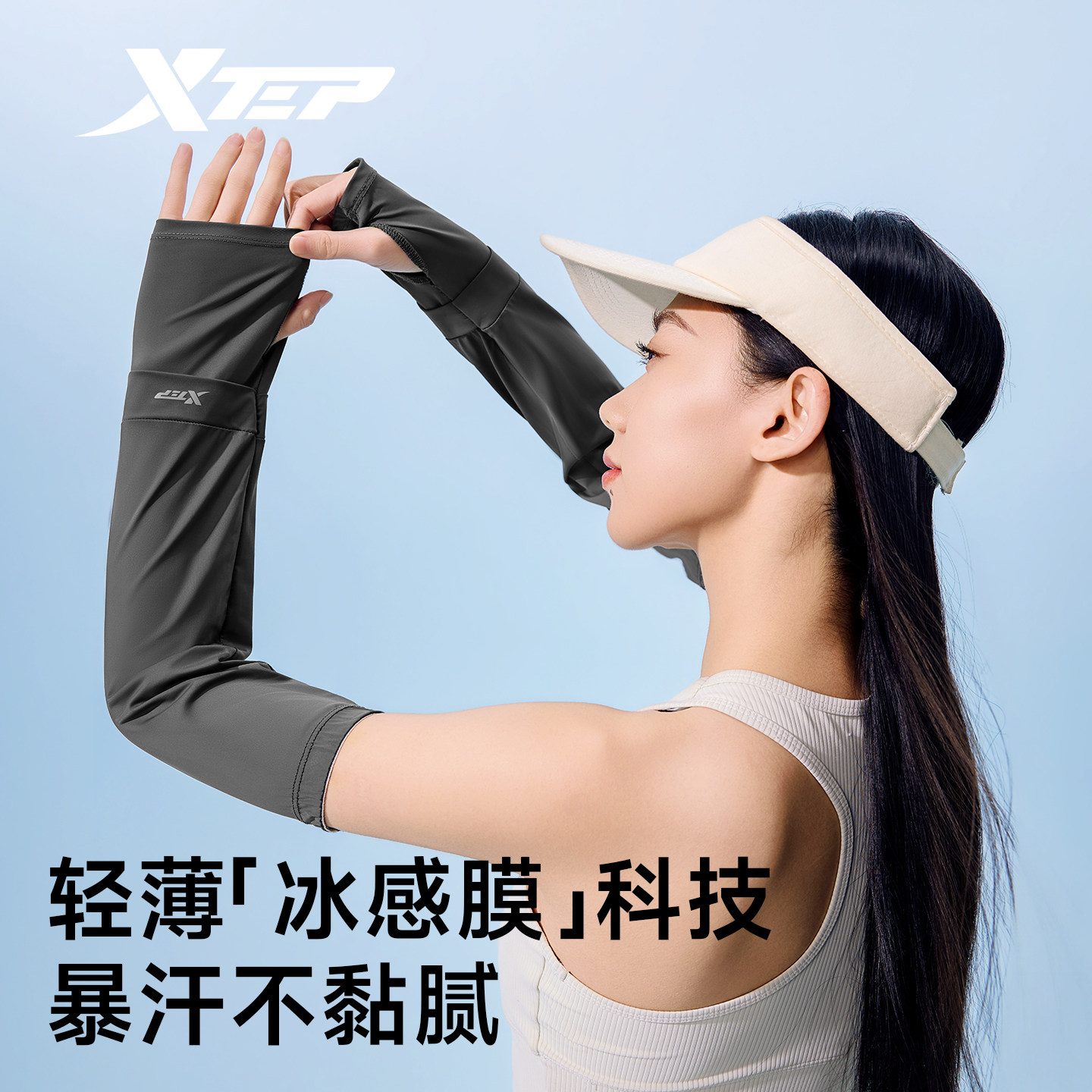 特步宽松冰袖女运动凉感防晒袖套护臂户外开车防紫外线骑行手袖男