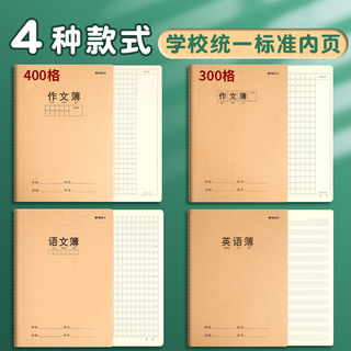 晨光作文本16k本子小学生专用作业本作文薄400格300格三四五六年级语文英语数学练习薄初中生牛皮纸方格练习