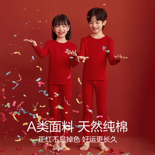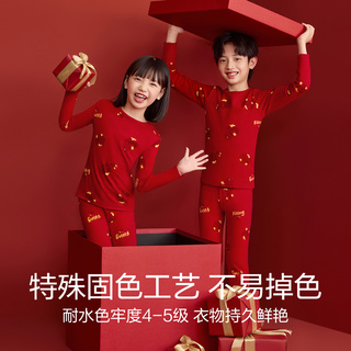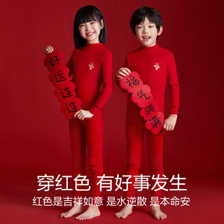 红豆居家儿童本命年红色马年内衣保暖套装中大童12岁纯棉秋衣秋裤