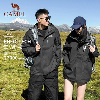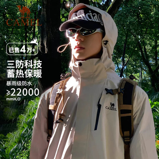 骆驼男装三防冲锋衣男户外三合一夹克可拆卸连帽外套防风防水内胆