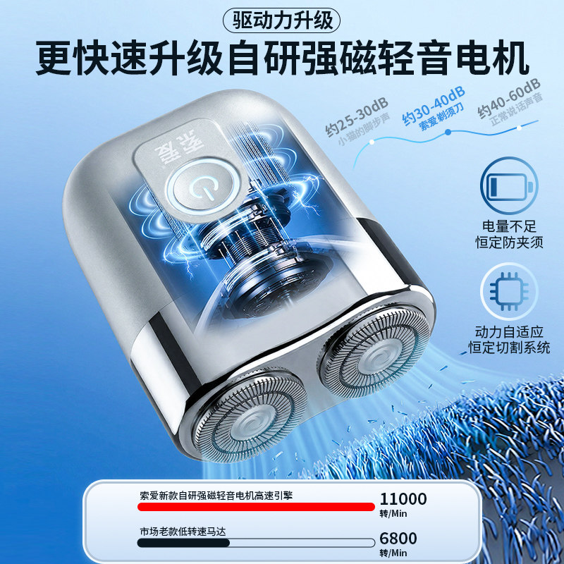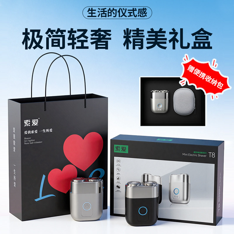 索爱T8电动剃须刀男士2026新款便携式刮胡刀全身水洗长续航礼盒装