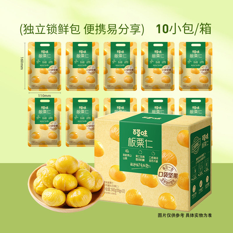 百草味熟制板栗仁盒装独立小包装休闲零食坚果甘栗子即食每日