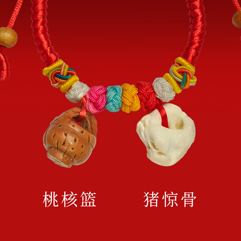 普陀山正品好运旗舰店宝宝手绳猪惊骨狗牙红绳桃篮哭闹