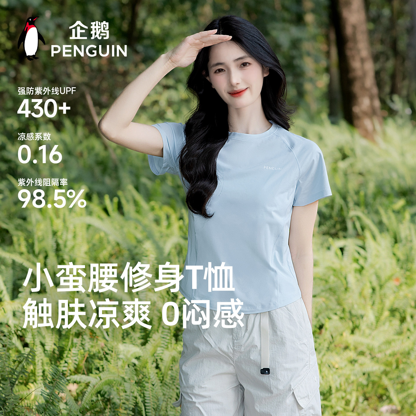 企鹅速干防晒短款t恤26春夏新款凉感原纱短袖户外运动修身显瘦女