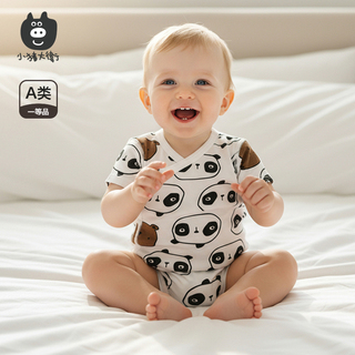 小猪大卫夏新生婴儿A类纯棉包屁衣男女宝宝短袖对开哈衣爬爬服
