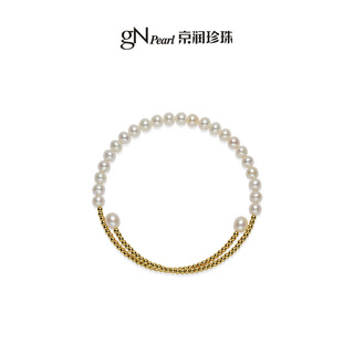 京润珍珠 简安925银天然淡水珍珠手镯4-6mm近圆形白色珍珠首饰女P