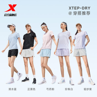 特步速干T女夏季训练瑜伽女装健身羽毛球服T恤透气体恤运动短袖女