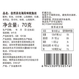 自然派炭烧鱿鱼丝70g/袋装芥末手撕鱿鱼办公室零食北海风味天妇罗