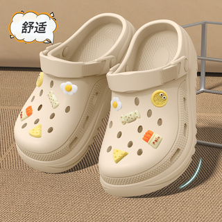 七色纺防滑洞洞鞋女款夏季家居厚底透气防臭外穿包头沙滩凉拖鞋男