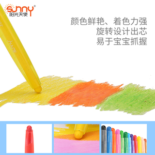阳光天使Sunny 12色儿童可旋转宝宝蜡笔不沾手蜡笔幼儿园涂鸦笔高颜值