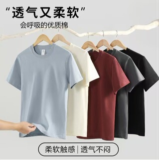 MUDO100%新疆长绒棉230G重磅全棉T恤衫纯色百搭短袖男女夏季