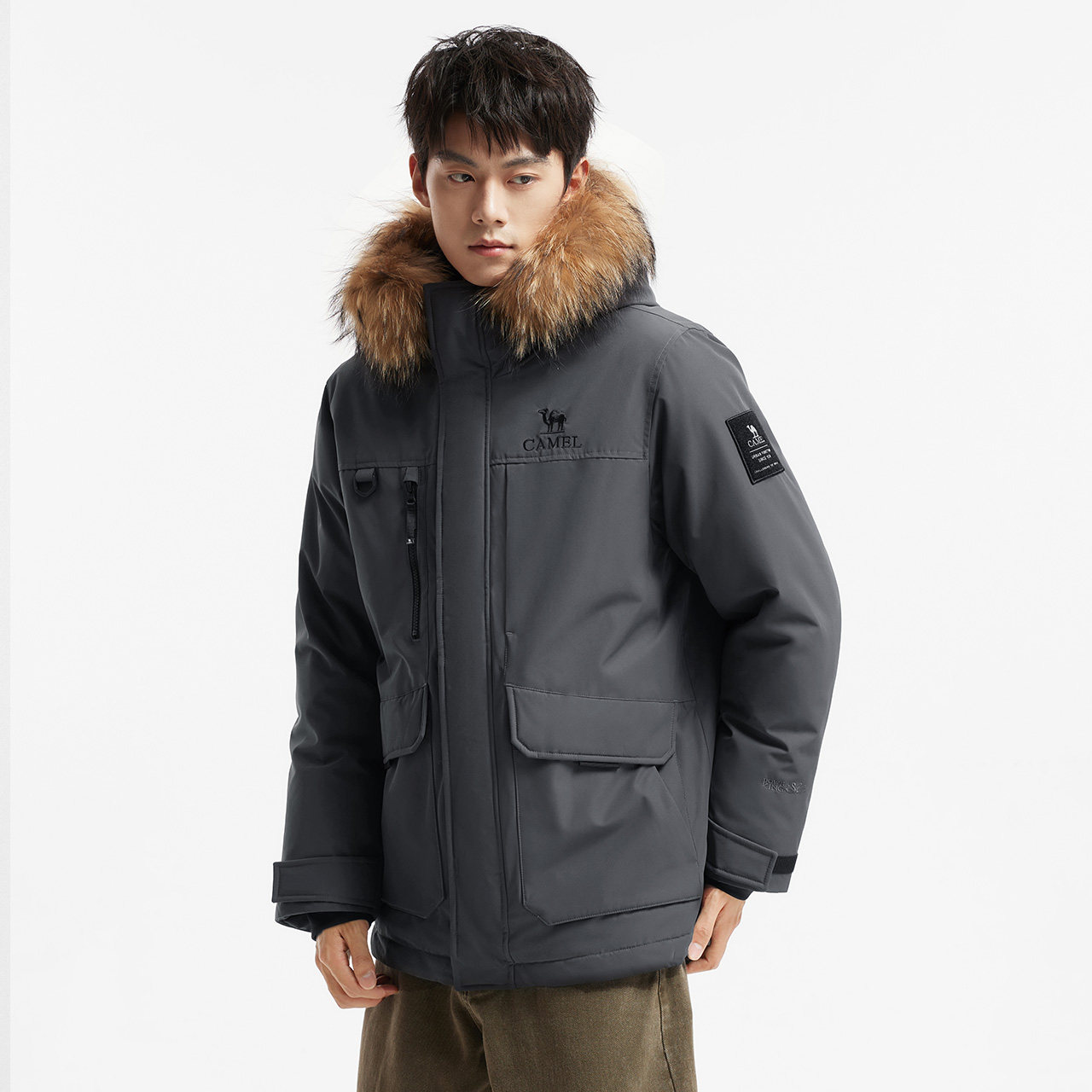 【鹅绒】骆驼羽神Ultra 男装加厚工装三防派克鸭绒羽绒服短款冬季