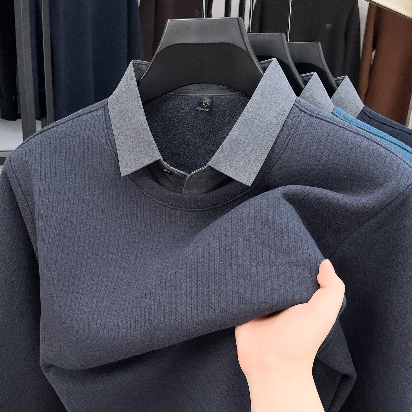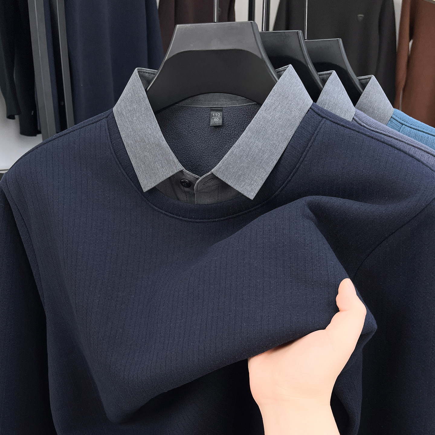 红蜻蜓男士假两件毛衣加绒加厚冬季新款休闲保暖中年爸爸装打底衫