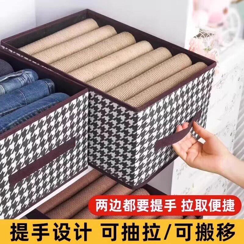 衣服收纳箱千鸟格家用衣柜分层整理收纳神器放衣物布艺折叠收纳筐