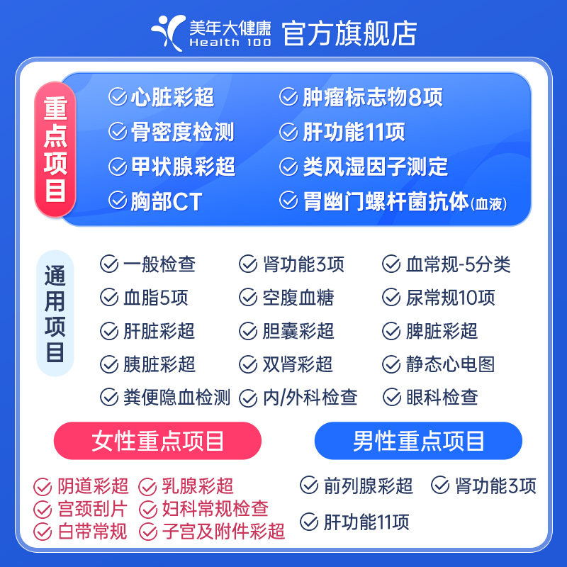 美年大健康中老年感恩高端体检套餐183TMMN00父母体检卡CT检测
