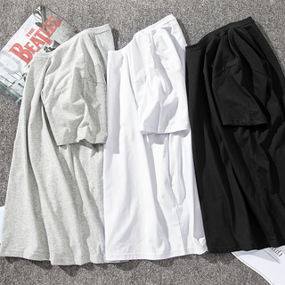 重磅纯棉短袖t恤男士上衣服新款黑白色半袖纯色春夏季打底衫男装