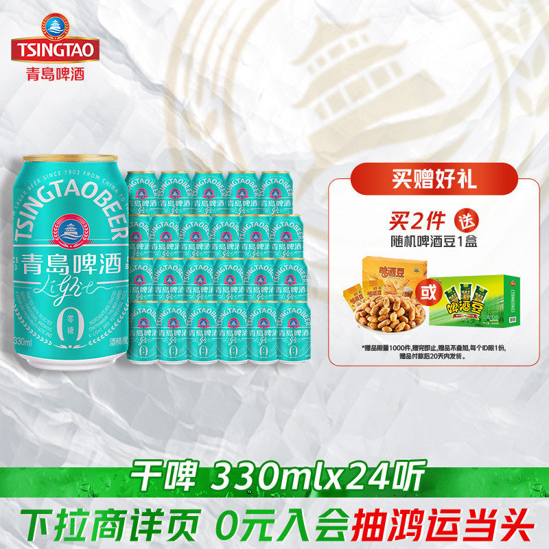 :原价78元,现在领取5元优惠券,预估到手73元,【69】青岛啤酒轻干低糖330ml*24;【拍2送啤酒豆,88会员到手约69】330ml黄金容量,24听囤货无忧!0糖低卡配方解锁夏日畅饮新姿势,绵密泡沫裹挟麦芽清香,冰镇后激爽感直达味蕾。健身控卡党/聚会达人必备,解馋不怕胖,佐餐追剧都超搭!限时特惠戳↓囤货趁现在!