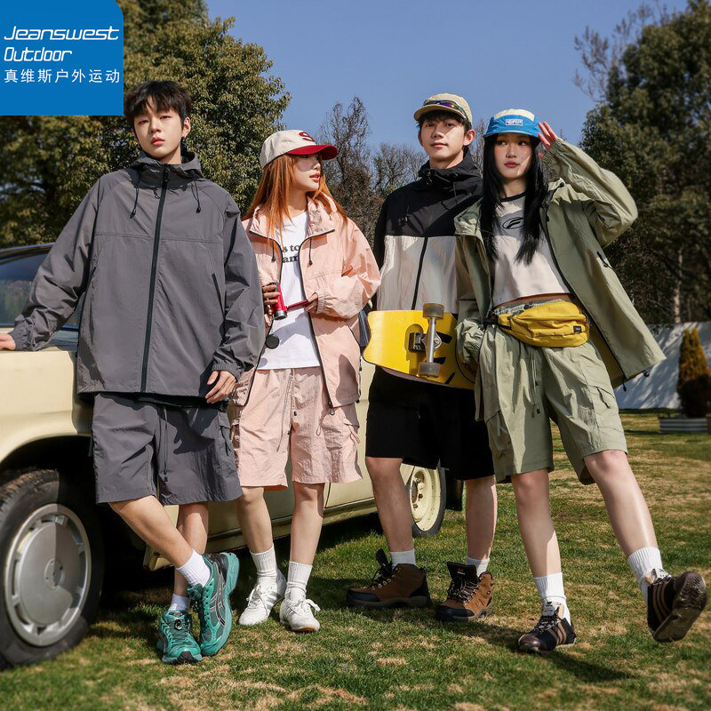 真维斯户外运动UPF50+多巴胺防晒衣夏透气情侣户外登山服休闲套装