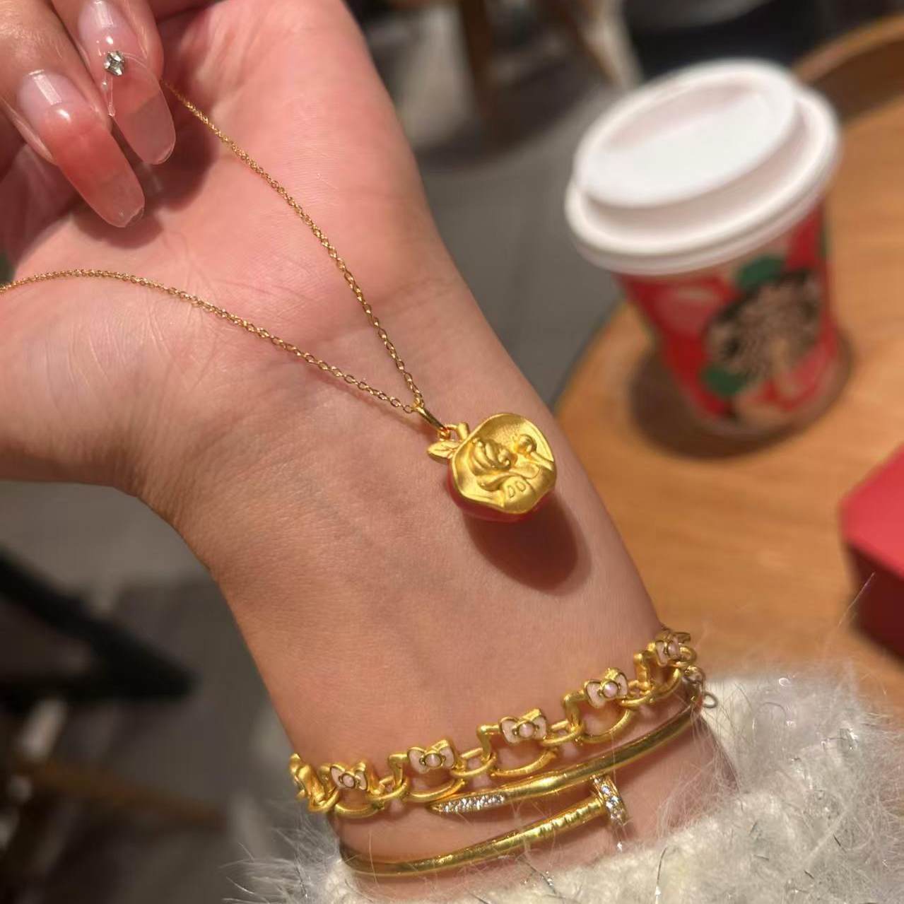 新中式拉丝点钻苹果项链女新款吊坠平安夜圣诞节礼物送女友
