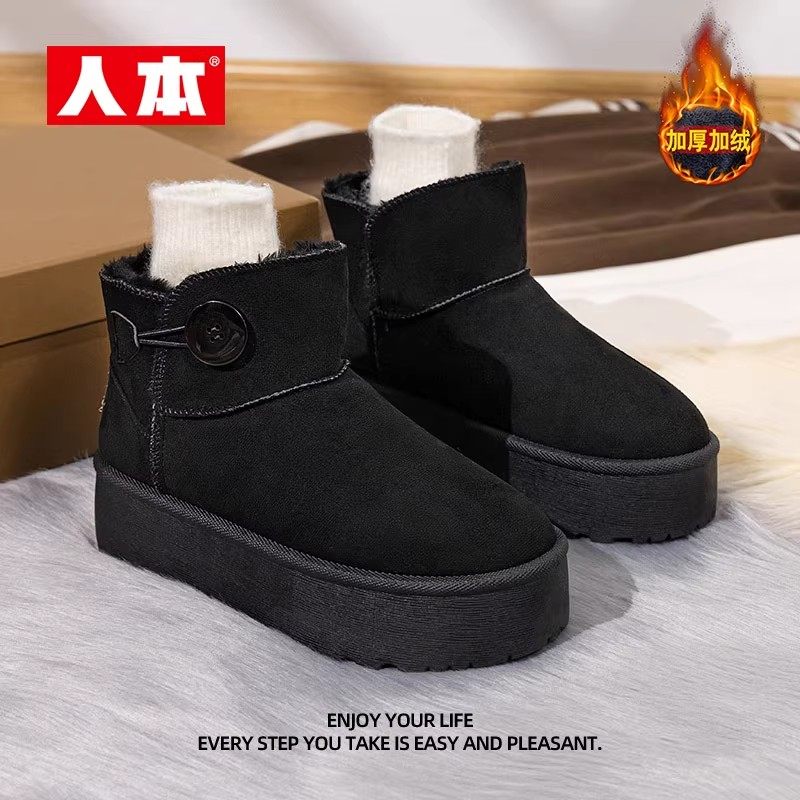 人本雪地靴女款2025新款女鞋冬季加绒加厚保暖鞋子厚底增高棉鞋女