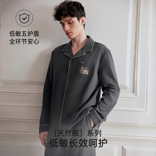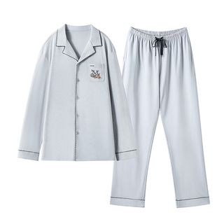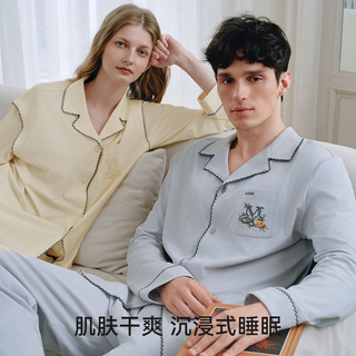 嫚熙春秋季纯棉男士睡衣男款长袖情侣休闲柔软家居服套装2026新款