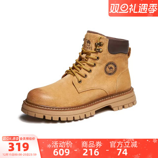 骆驼男鞋2025秋冬新款大黄靴男加绒复古英伦风户外马丁靴工装靴女