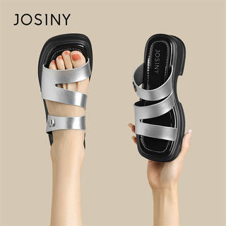 卓诗尼女鞋夏季新款粗跟凉鞋百搭高跟鞋浅口单鞋一脚蹬懒人鞋
